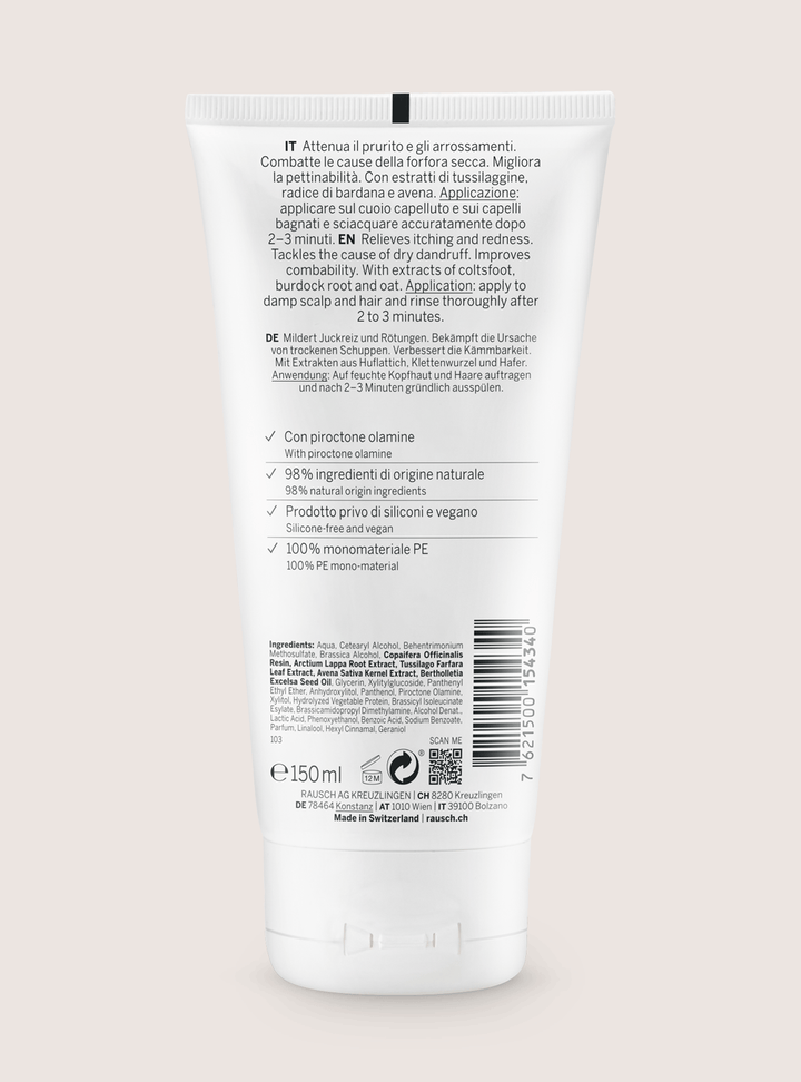 Conditioner for dry dandruff and itchy scalp. Dry dandruff is due to a dry scalp – this conditioner soothes the scalp and provides it with extra intensive hydration for noticeable effects after just 1 week. Alleviates itchiness and redness, and provides lasting relief from dry dandruff. Hair is softer, easier to comb, while the scalp regains its natural balance. Regular use helps prevent the formation of new dandruff. With piroctone olamine and carefully selected extracts of coltsfoot, burdock root and oat.
